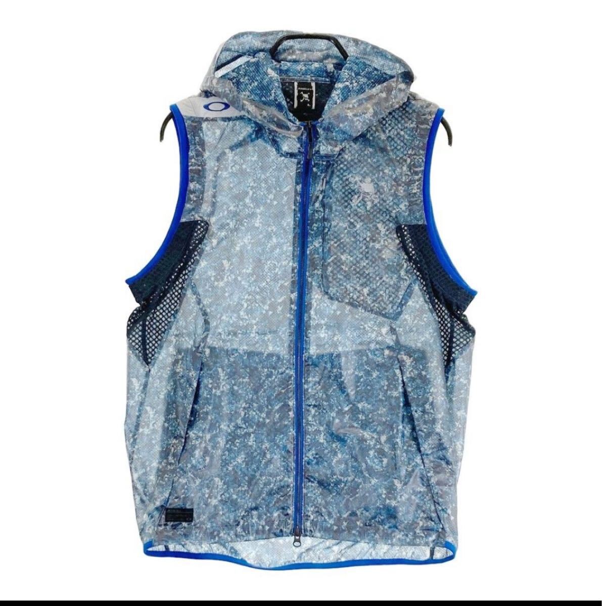 > オークリー 461438JP フード付 ナイロン ジップベスト 総柄 ブルー系 [240101263243] ゴルフウェア メンズ サイズXL