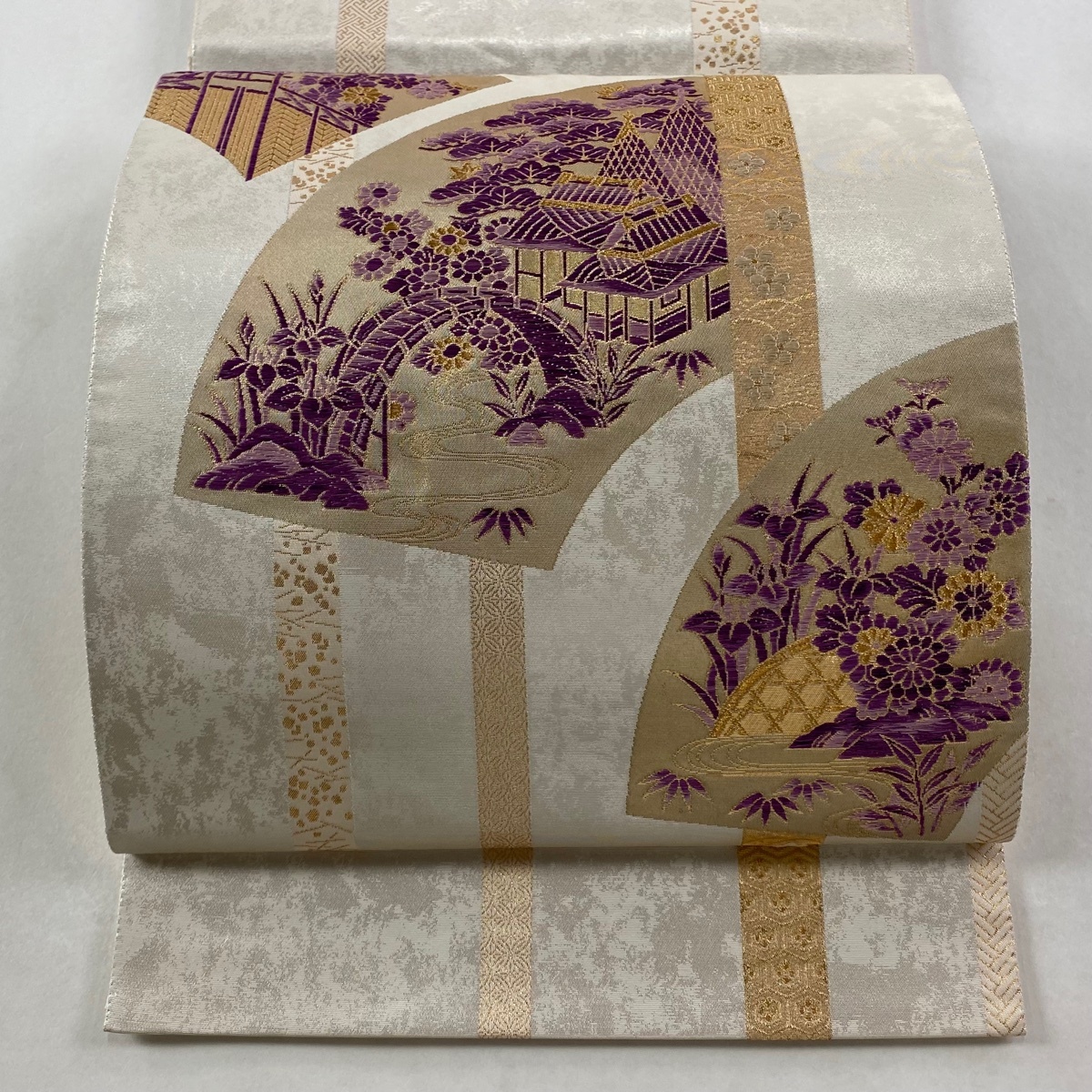 - 袋帯 名品 帝王紫 落款 海賦添寿文様 金糸 箔 銀色 お太鼓柄 正絹 【中古】