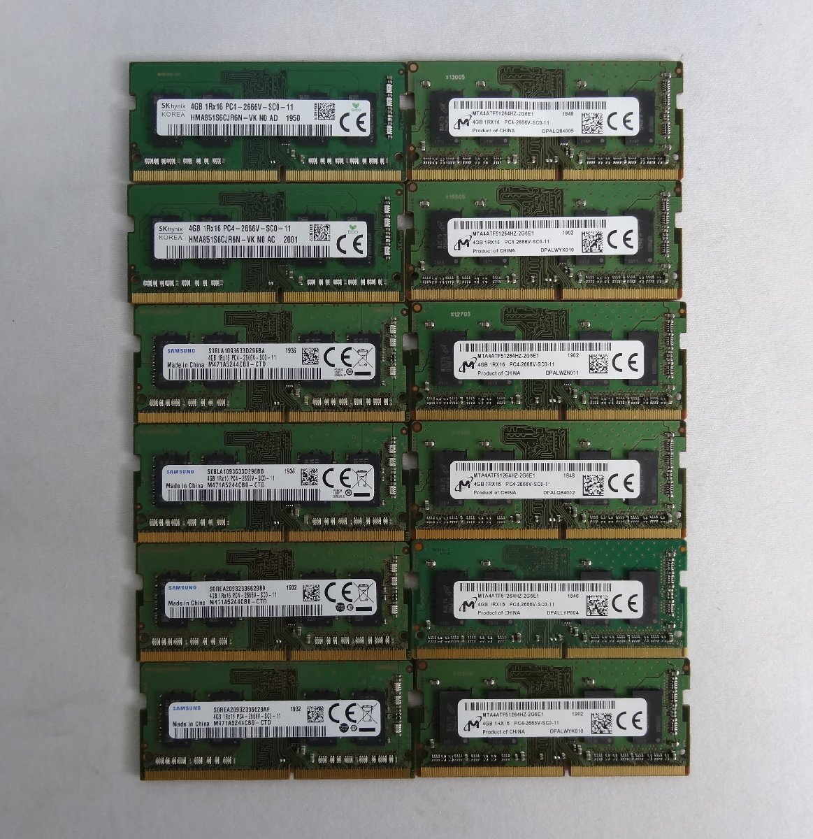 - 部品取り ノートパソコン用メモリ Micron SAMSUNG SKhynix 4GB PC4-2666V-SC0-11 10個セット 管理No.5A4044