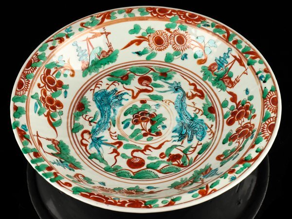 【流】中国美術 呉須赤絵大皿 幅36.5cm 箱付 UD376拍卖
