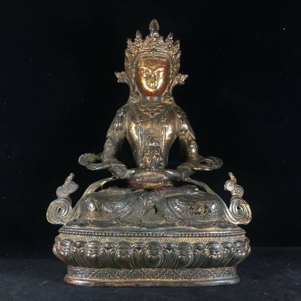 - 旧蔵 古銅彫 長寿佛 佛像 擺件 古擺件 古置物 中国古玩 骨董品 時代物 稀少唐物