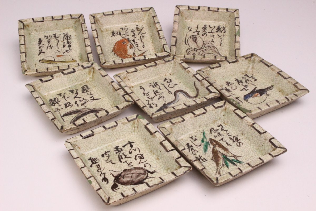 尾張国 笹島焼 絵替わり 豆皿 8客