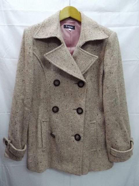 > 美品★T-eyes◎シルク混み Pコート/ピーコート/ピンク/Mサイズ