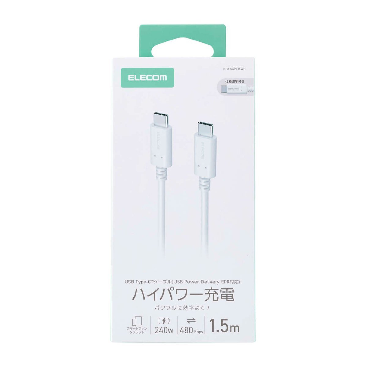 > USB2.0ケーブル [C-C] 1.5m USB PowerDelivery EPR対応 最大240W出力 最大480Mbpsでのデータ転送が可能: MPA-CCPE15WH