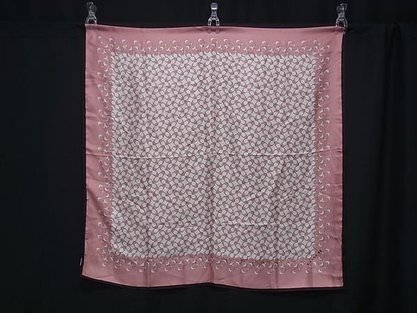 - ■美品■ COACH コーチ シグネチャー シルク100% 大判 スカーフ ストール ショール レディース アイボリー系×ピンク系 DK6335
