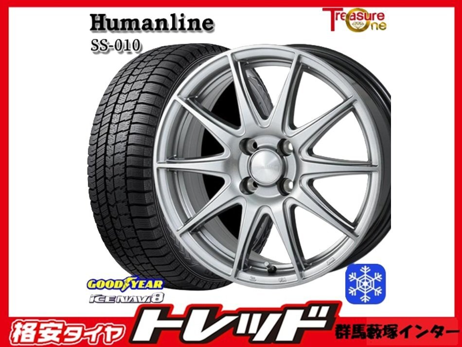 > 藪塚店 新品 冬タイヤセット ヒューマンライン SS-010 14インチ 4.5j PCD100 4H +45 グッドイヤー アイスナビ8 155/65R14 2023-24年製