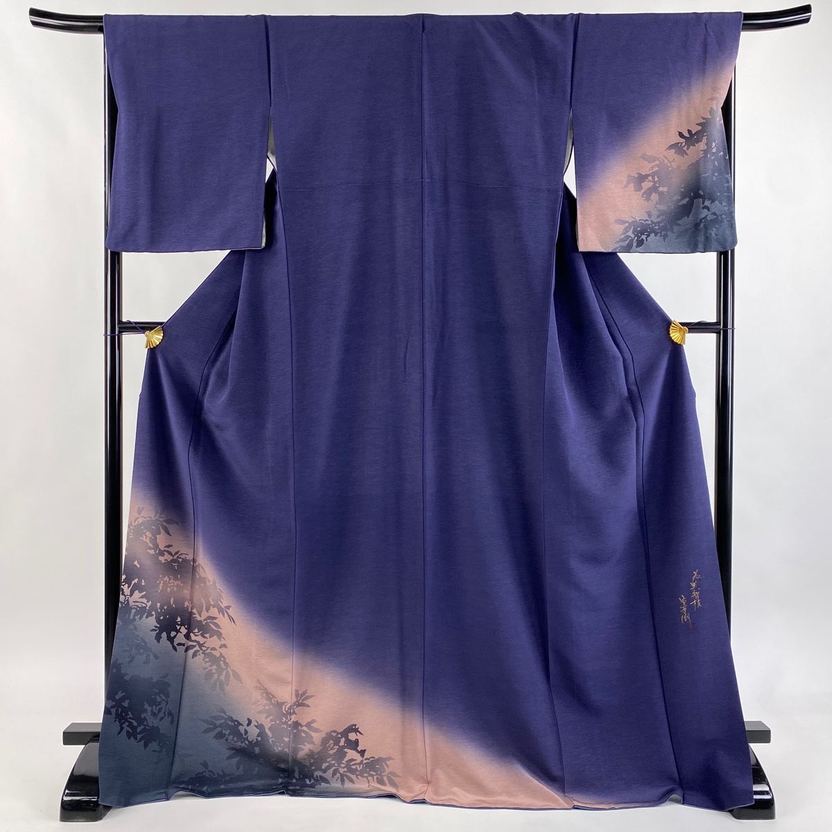 - 訪問着 身丈172cm 裄丈67cm M 袷 室華風 落款 シルエット ぼかし 染め分け 濃紫 正絹 名品 【中古】