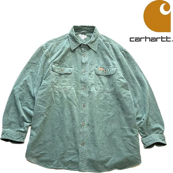 > 1点物◆カーハート雰囲気系チャモアクロスシャツ深緑ネルシャツ古着メンズXXLレディースOKアメカジ90sストリートUSAワークブランド362423