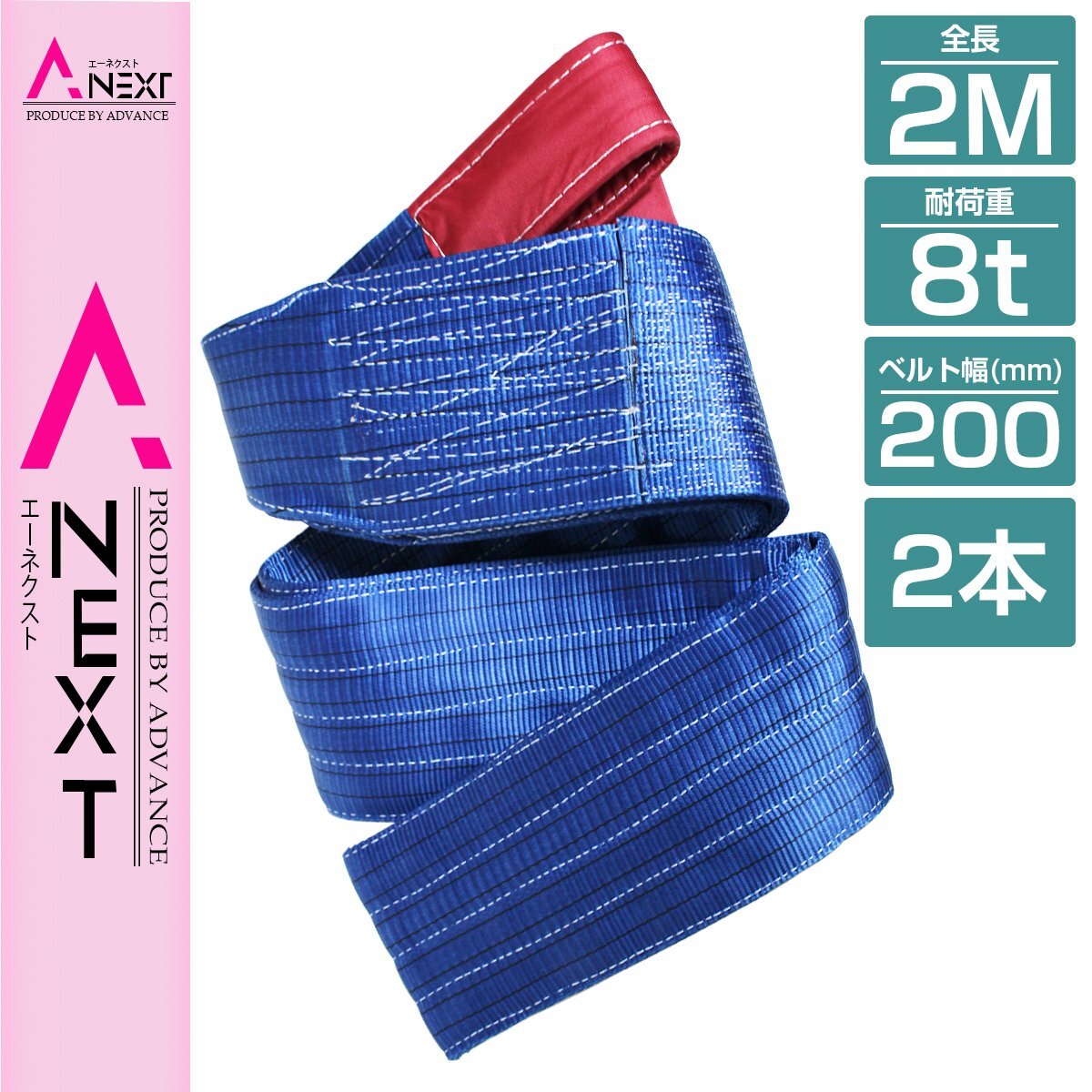 > [2本 セット/耐荷8t/長さ 2m] スリング ベルト 吊上げ ナイロン クレーン ロープ 荷吊り 玉掛け 牽引 運搬 8000kg 8トン 幅200mm