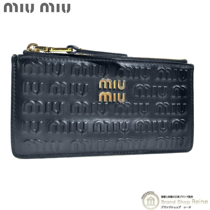 > ミュウミュウ (MIUMIU) ロゴ レザー カードケース コインケース 小銭入れ 5MB006 ブラック(中古)