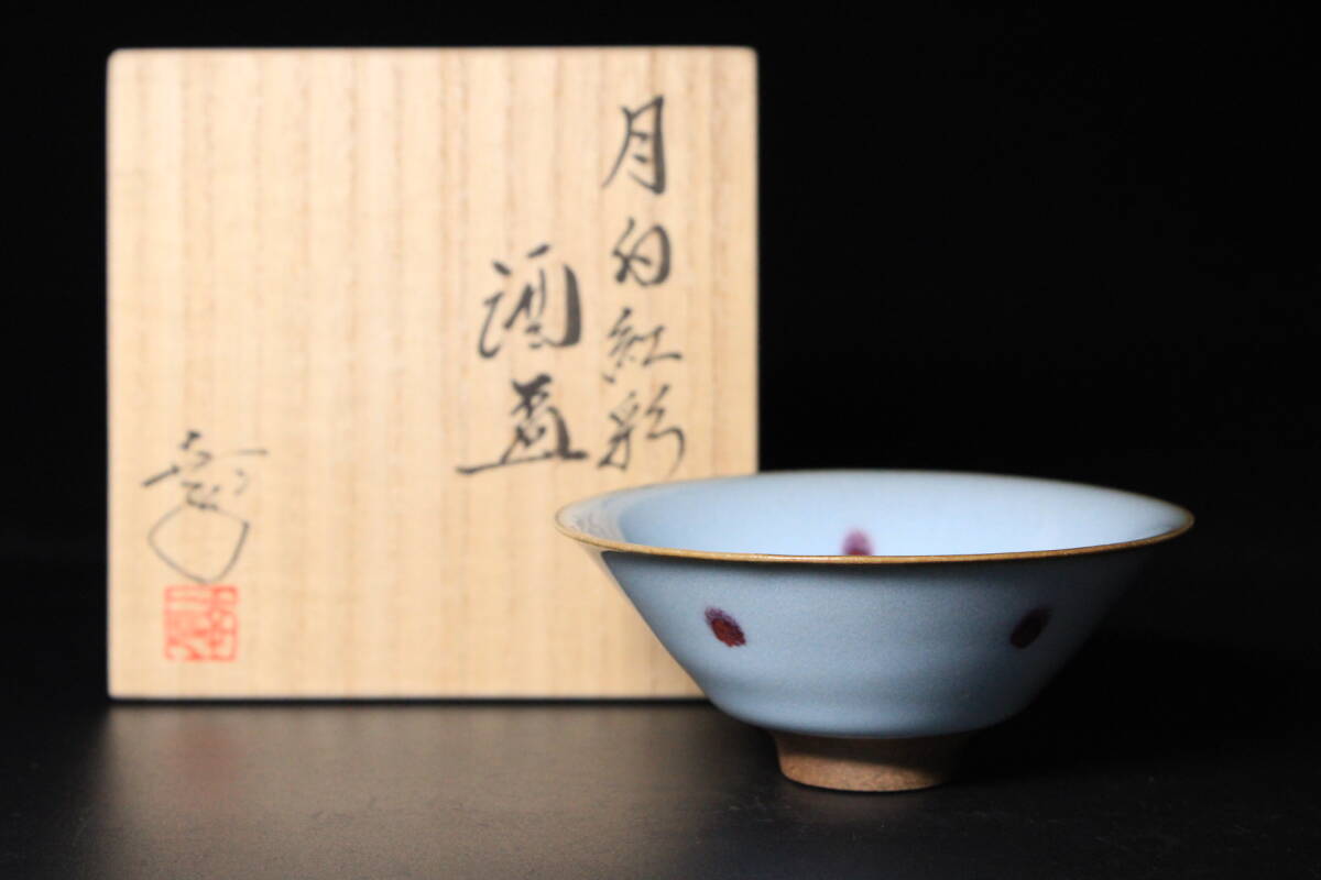 > □■希少上作!鎌田幸二 月白紅彩 酒盃 酒器 盃 ぐいのみ 煎茶碗にも!■□懐石 料亭 日本酒 割烹