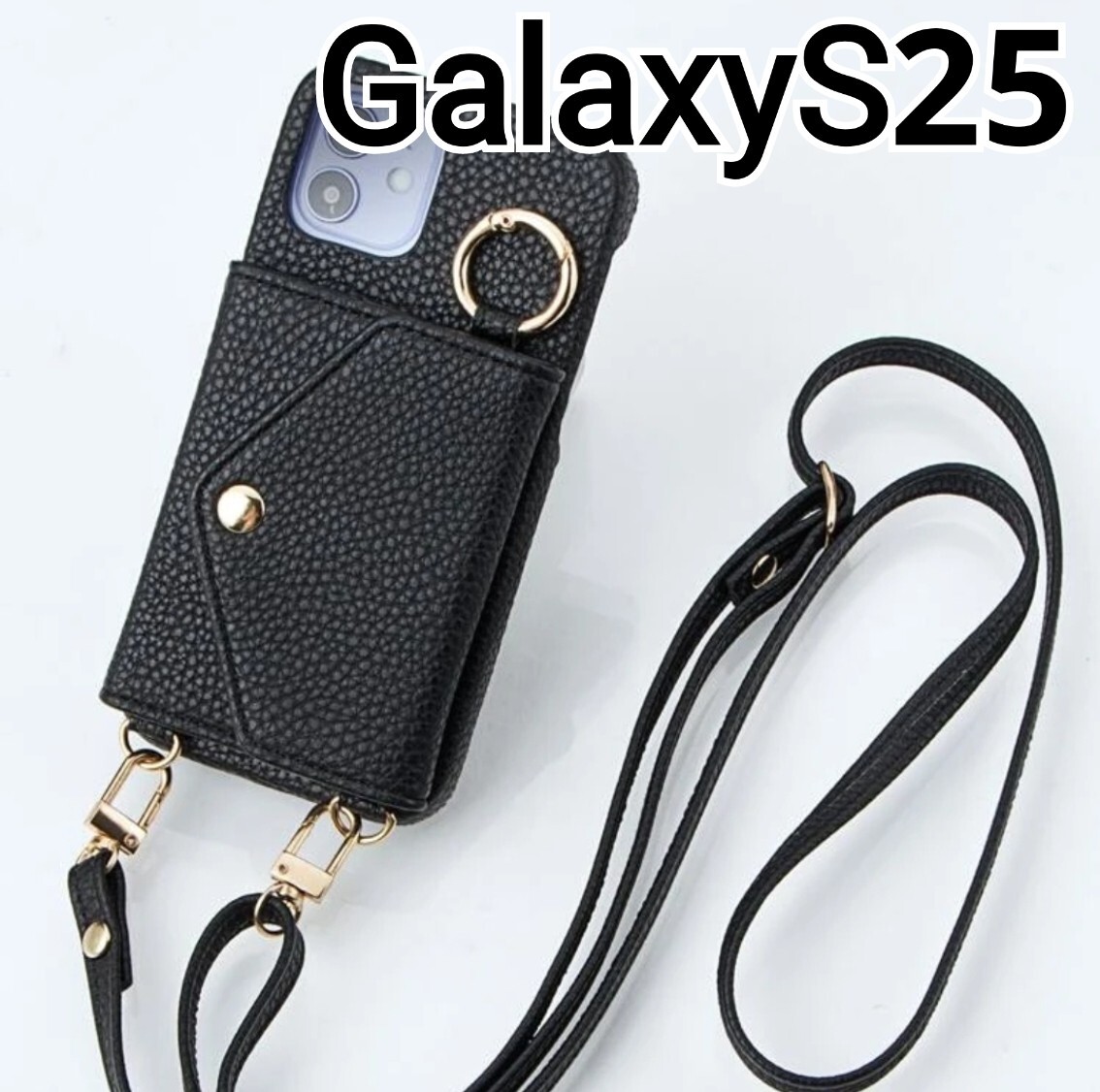 > GalaxyS25 ケース ブラック 黒 レザー風 ショルダーベルト付き Galaxy S25
