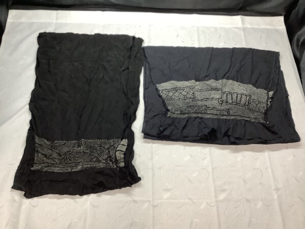 - D6-158 男性用 兵児帯 2本 まとめ売り 黒 紺 絞り 浴衣 着物 和服 和装小物 着付け帯 リメイク材料 高級 上品 中古品