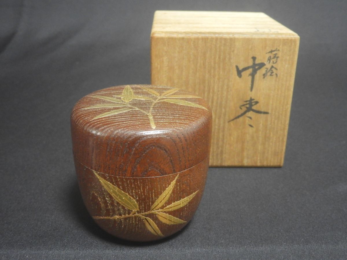 - 茶入れ 棗 蒔絵 木彫り 木箱 茶道具 【送料無料】