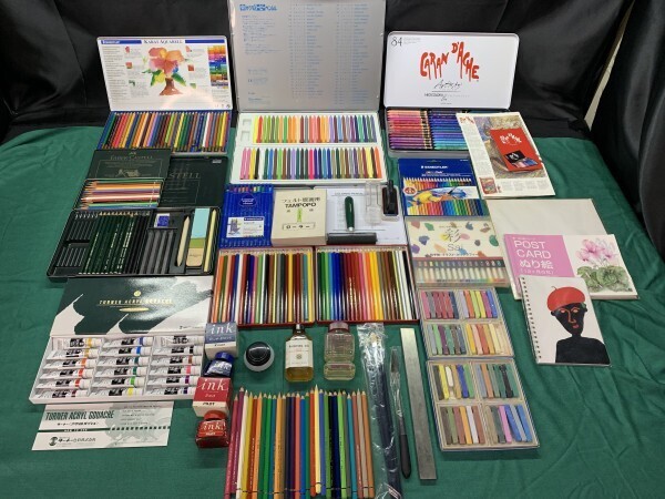 - B6-484 画材まとめ売り 色鉛筆 アクリルガッシュ パステル クレヨン クーピー 筆ペン デッサン用品 他【現状品】