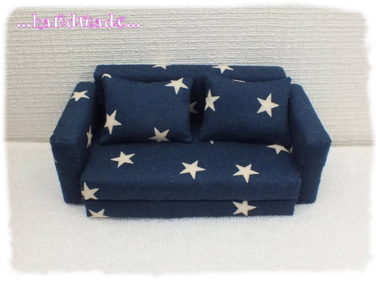 - ドールサイズ★星柄ソファ★スクエア型クッション *ハンドメイド* ドール用・ねんどろいど・アクスタ・ぬいぐるみ等に♪