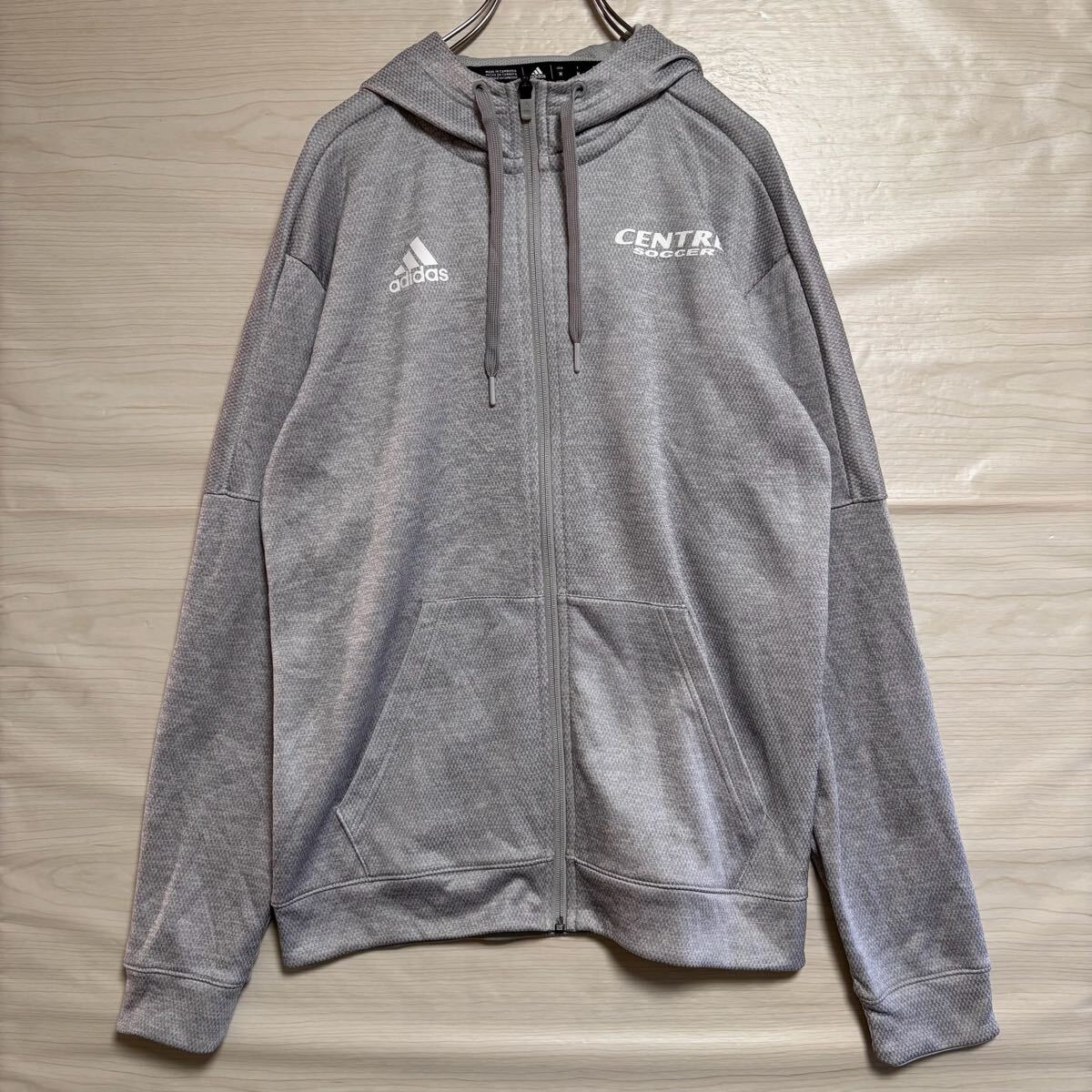 > adidas アディダス ジップパーカー ジップアップ スウェット フーディー サイズM ライトグレー ポリエステル メンズ トップス(44)