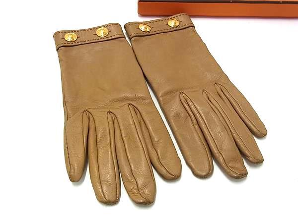 - 1円 HERMES エルメス セリエ レザー 手袋 グローブ 防寒具 表記サイズ 6 1/2 レディース ブラウン系 FR2110