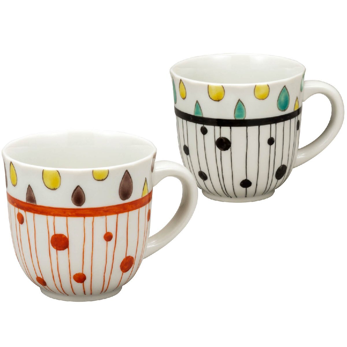 > 【即決】送料無料!九谷焼 ペア マグカップ しずくライン 陶器 おしゃれ 食器 日本製 人気 ブランド 美品 新品 未使用