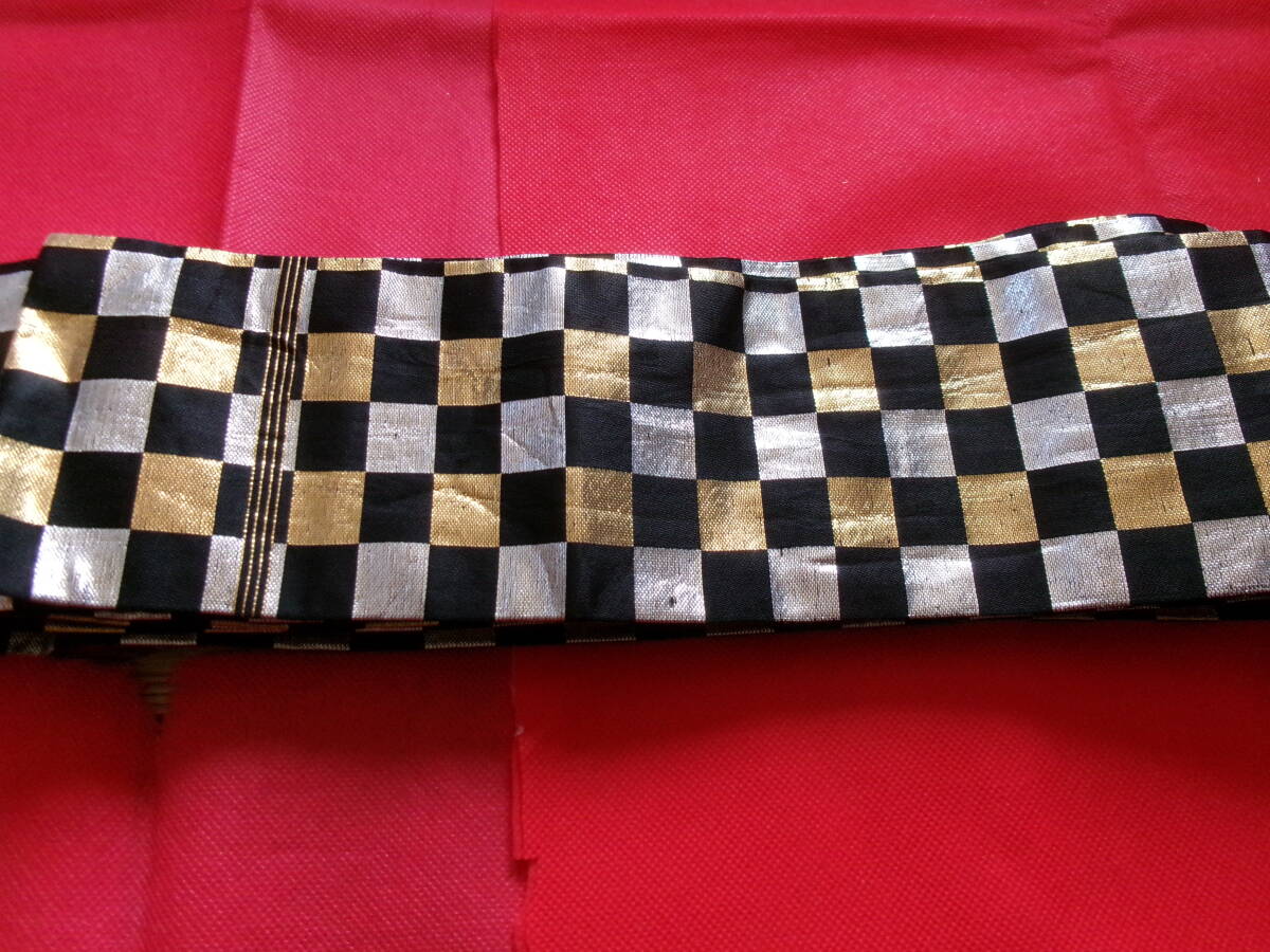 - 帯 角帯 踊帯 リバーシブル 金銀黒 市松模様 リメイク等にも