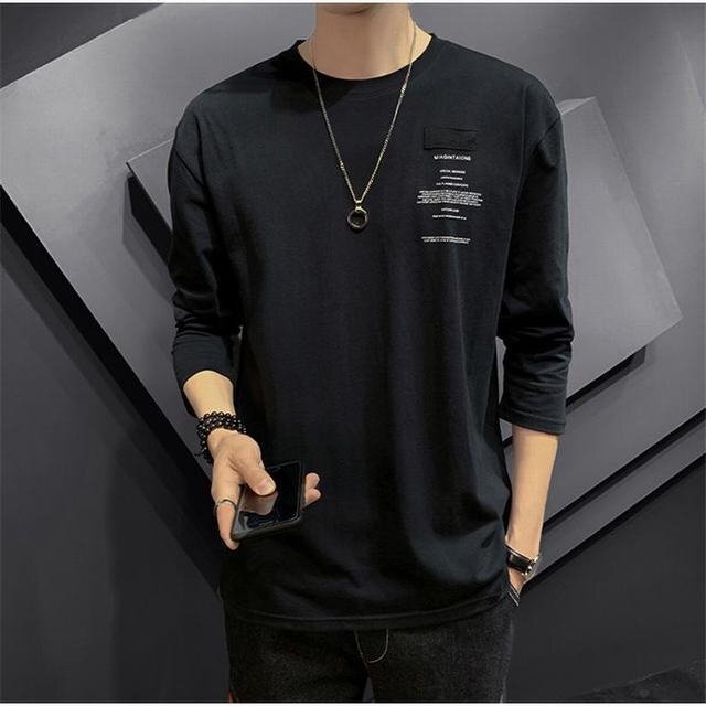 - Tシャツ メンズ 長袖 トップス クルーネック カジュアル ゆったり おしゃれ メンズ ティーシャツ ブラック 3XL