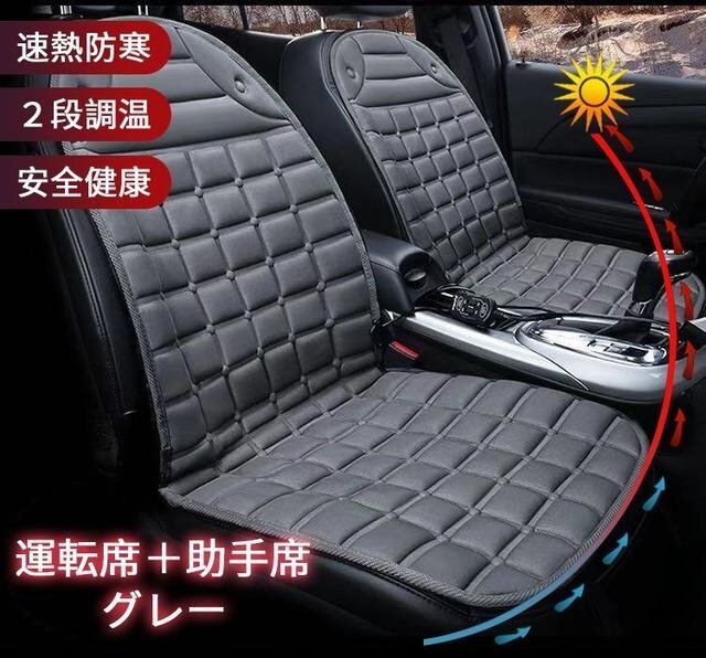 - 汎用 ヒーター 車用 ホットカーシート 防寒 2段調温 運転席+助手席 グレー