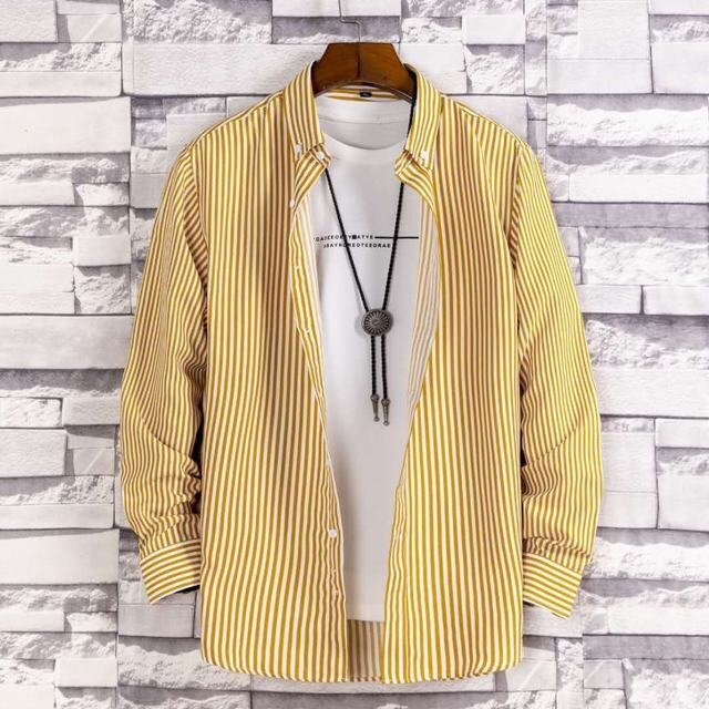 - メンズ長袖シャツ、カジュアルシャツ 春秋服 マルチストライプ シャツ トップス 上着 ビジネス カジュアルシャツJ 2XL
