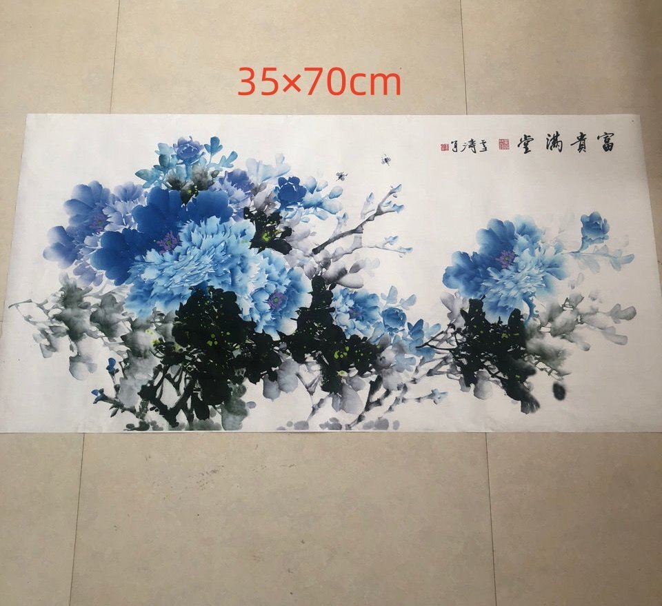 - 中国水墨画 王雪涛 牡丹 花開富貴 青い牡丹 中国美術 リビング 学習 見本 練習用 表装なし 画仙紙 画芯 鑑賞 装飾 印刷 zh1140
