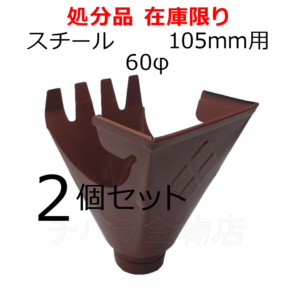 > ヨド樋 スチール 角集水器 105mm用 60φ 2個セット 赤 金属製雨樋 在庫処分品(汚れキズあり)