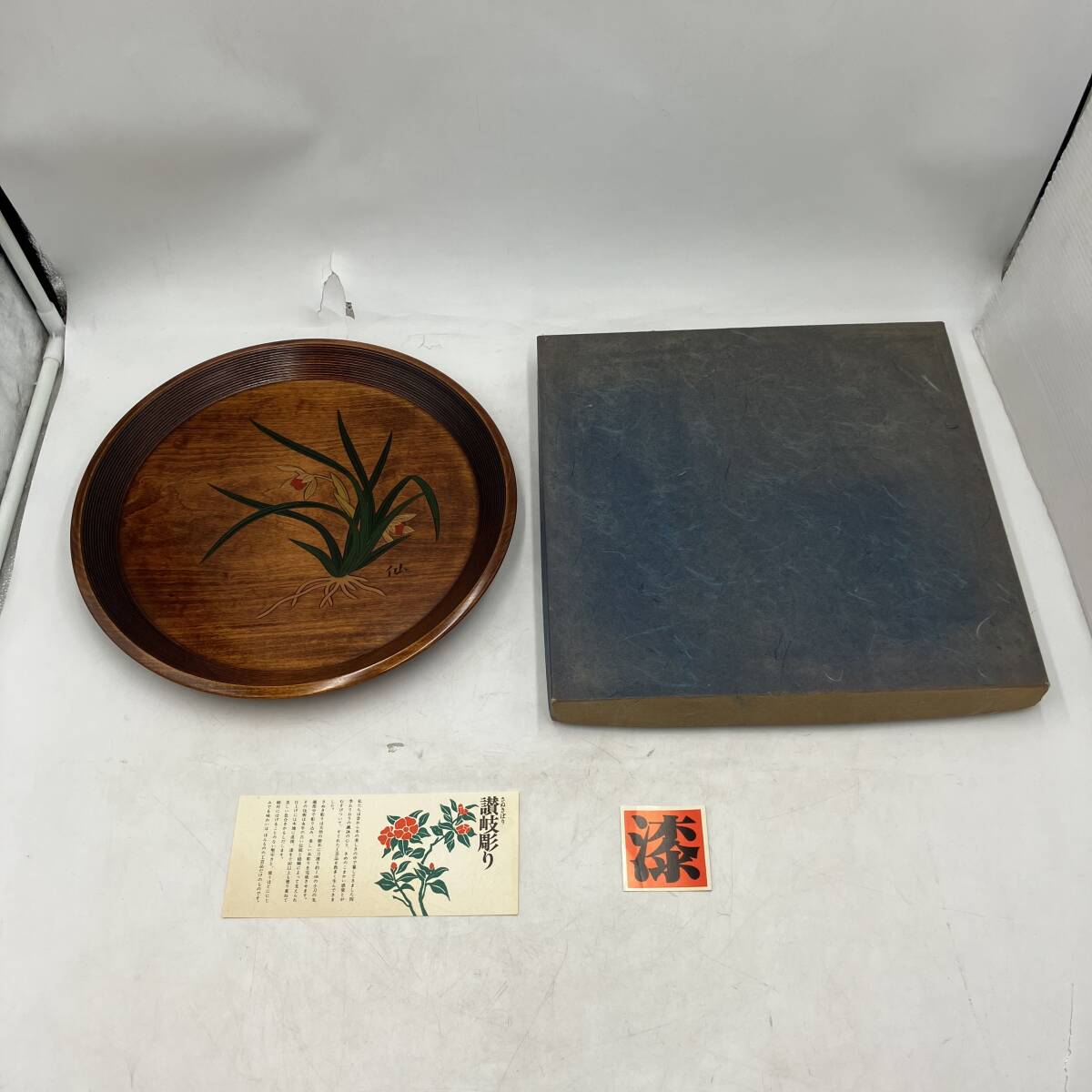 【長期保管品/極美品】讃岐彫り 天然木 仙 盆 木製 漆器 1点 元箱あり トレー インテリア 置物 昭和レトロ