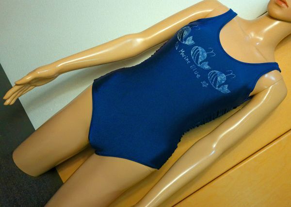 - 中古品☆Marine Blue♪クジラデザインツルツル水着Sサイズ タグ無し 水着&レオタード3着まで同梱可 出品商品10点落札送料無料