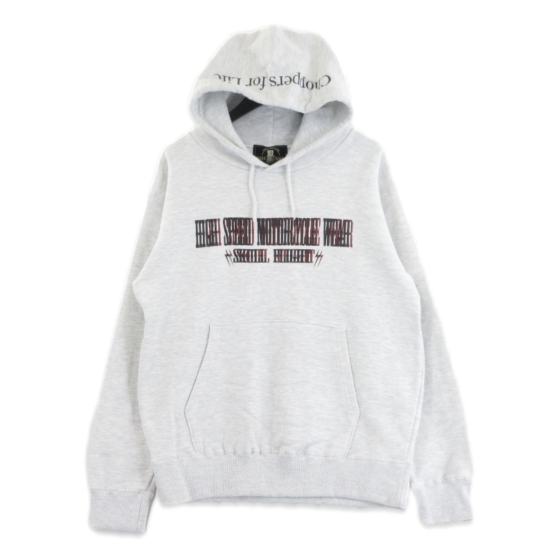 > 美品 SKULL FLIGHT スカルフライト プルオーバーパーカー SFH22-008 HELL'S BELLS プリント フーディコットン グレー L 99000049