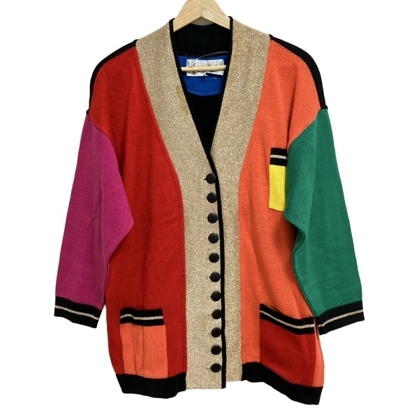 > カステルバジャック Castelbajac カーディガン サイズ44 L - オレンジ×黒×マルチ レディース 長袖/刺繍 トップス