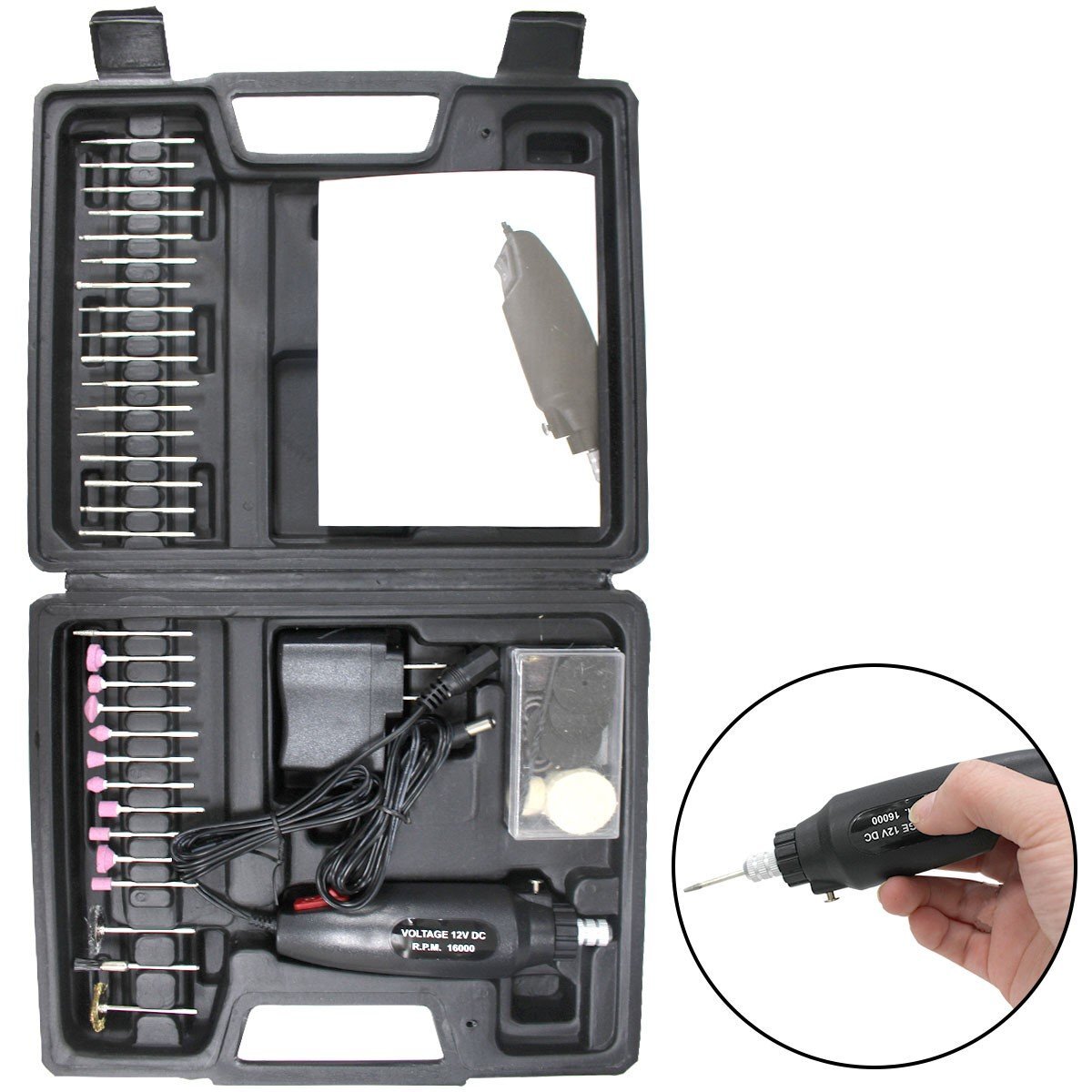 - 電動 ホビー ルーター 高速12000回転 60点セット 小型 マルチ グラインダー ハンド リューター ケース付 研磨 彫刻 バリ取り