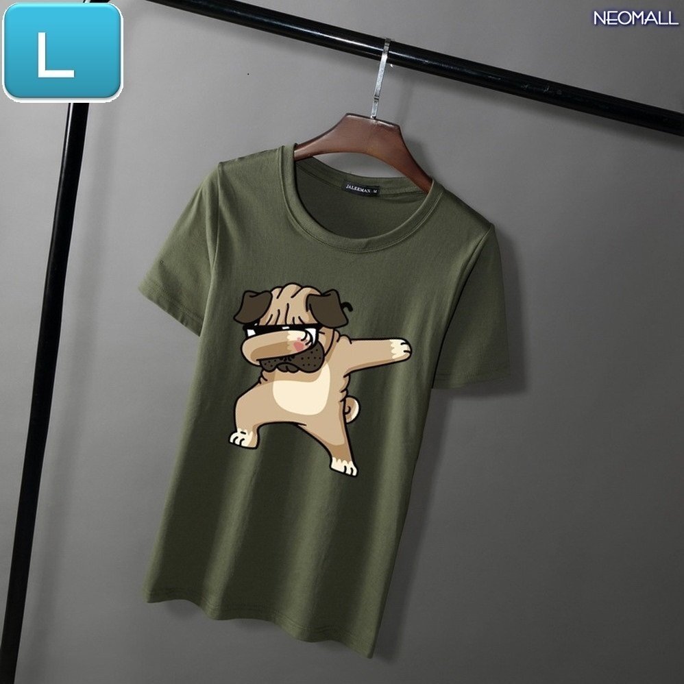 - 夏にピッタリ ☆ 丸首 半袖 Tシャツ【346】 グリーン Lサイズ トップス シャツ シンプル イラスト 犬 ドッグ 春夏