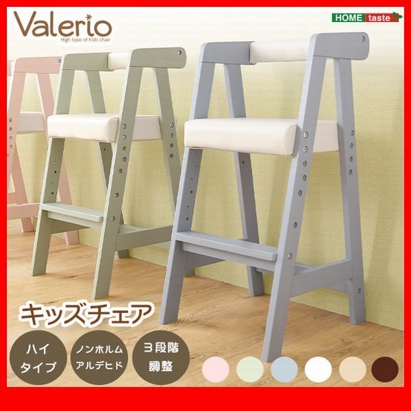 > ベビー キッズ★ハイタイプ キッズチェア 椅子/3段階高さ調整 天然木 PVC座面 コンパクト 軽量 お手入れ簡単/茶 青 ナチュラル 桃 緑 白/zz