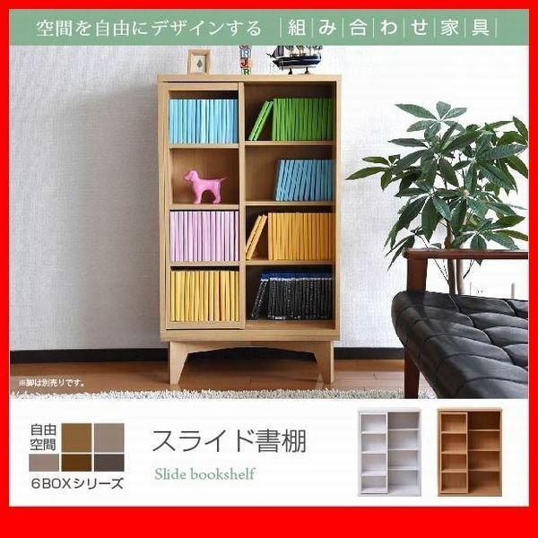 > スライド本棚★6BOX スライド書棚/文庫本 コミック収納/スライド式 本棚 書棚 ラック 収納棚 可動棚 木製/白 ナチュラル/特価/fra-049/zz