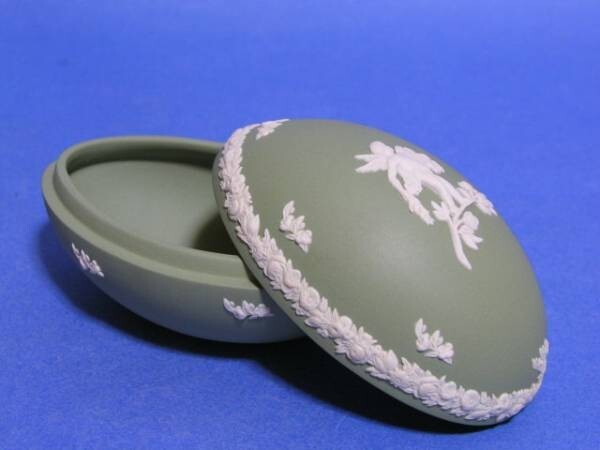 - ◎未使用 ウェッジウッド グリーンジャスパー 大型卵形蓋物 「天使」◎q9