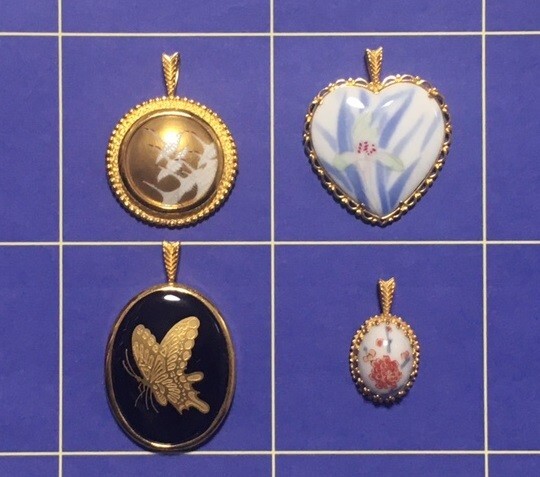 - ◎大倉陶園など4大日本名窯 綺麗な磁器ペンダント 4点セット◎a6