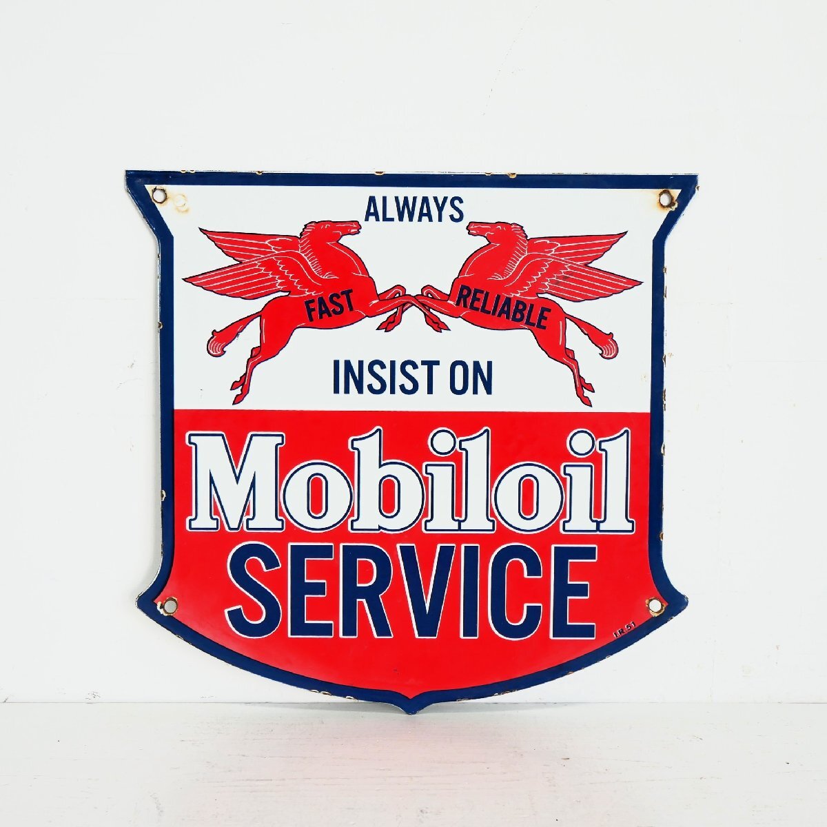 > ヴィンテージ Mobiloil SERVICE ホーロー製 看板 / アメリカ モービルオイル サービス サイン ガソリンスタンド 広告 #610-90-216-179