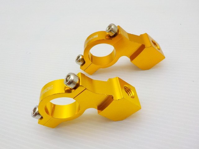 > TH32★☆10mm 正ネジ ミラーホルダー(ミラークランプ)22Φハンドル用 バイク イエロー2個(CB400SF・SR400・モンキー・ディオ・ジョグ・)