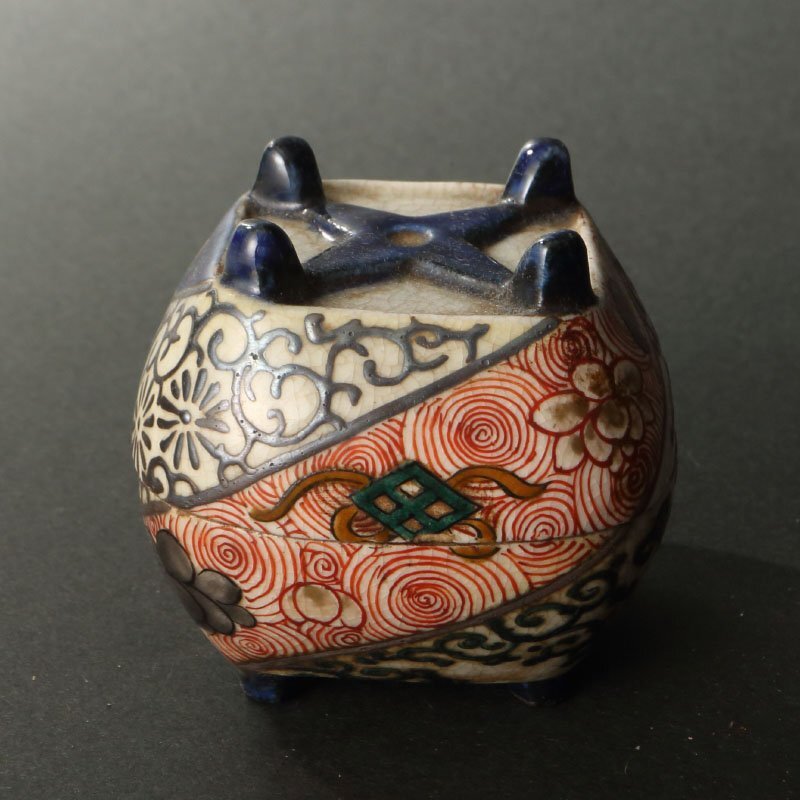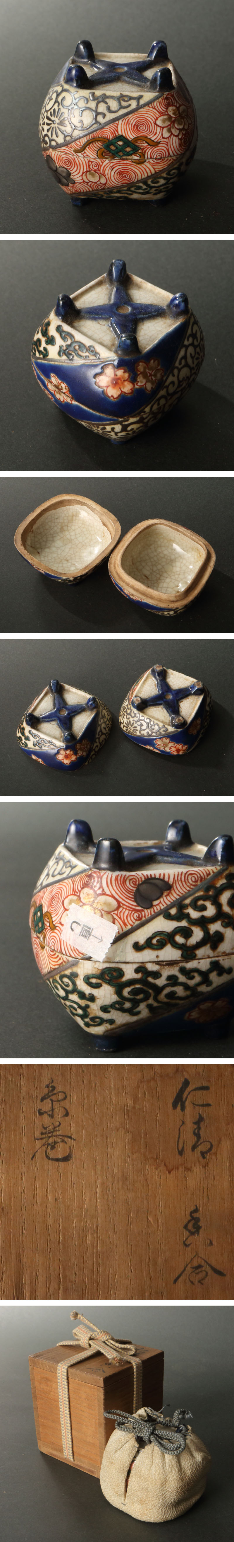 > 委託HK◇古清水焼 仁清糸巻香合 ※仕覆添え(茶道具 陶磁器 陶芸 京焼 清水焼 正月 慶事 七夕 年中行事 季節 飾り 古美術 7月 炭点前 )