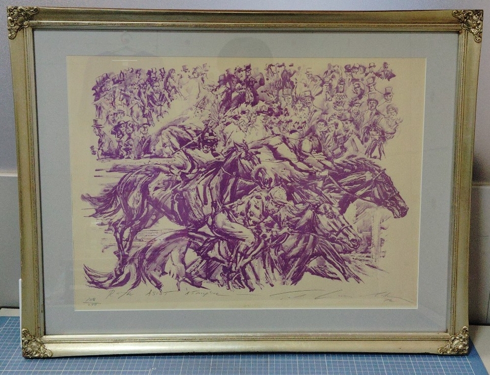 - 【競馬 絵画 真作 ROYAL ASCOT】額縁付き 158/250 作者不明 サラブレッド インテリア 壁掛け【倉庫】1119