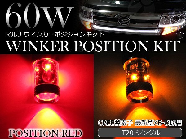 > 60W CREE製LED XBD素子 T20 シングル レッド⇔アンバー 赤/橙 ダブル球 LEDウィンカーポジションキット ソケットタイプ ツインカラー