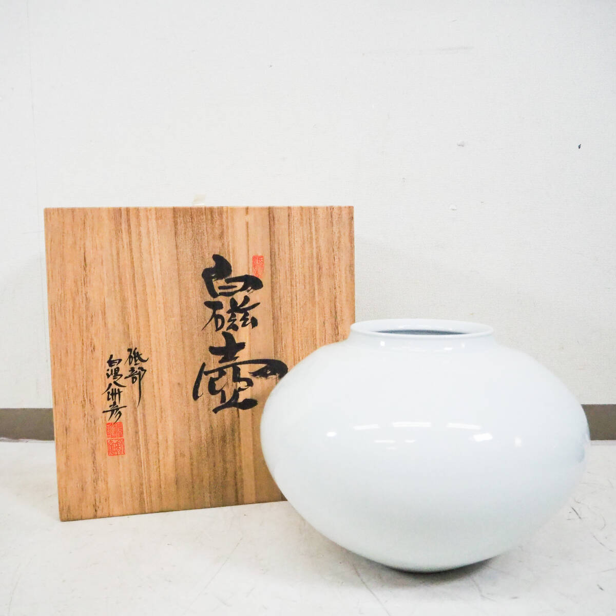 > 砥部焼 八瑞窯 白潟八洲彦 白磁壷 共箱 飾壷 花瓶 花入 花生 花器 陶芸 伝統工芸 S1854