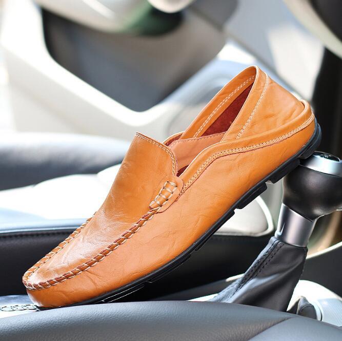 > 新入荷モカシンシューズ メンズシューズ レザーシューズ ローファー スリッポン ドライビングシューズ 3色 24.5cm~27cmイエロー