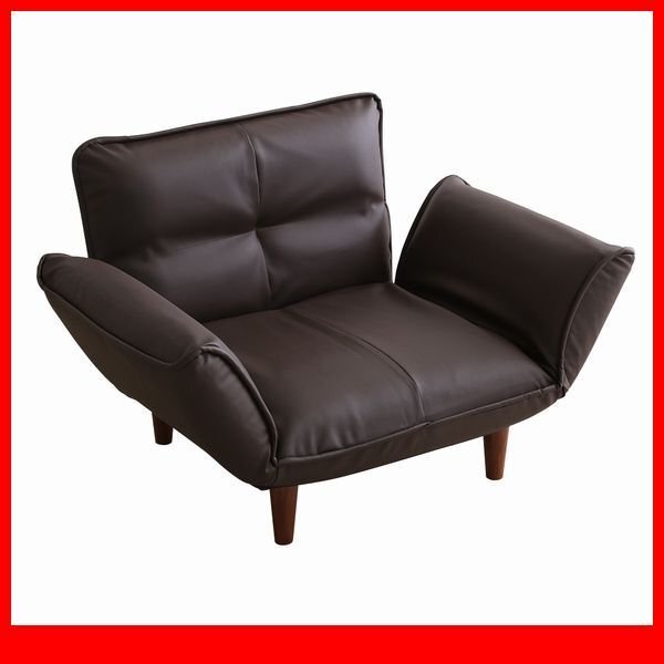 > ソファ★1人掛ソファ PVCレザー 背もたれ 肘掛け 14段階リクライニング/フロアソファ カウチソファに/日本製 完成品/ブラウン/a2