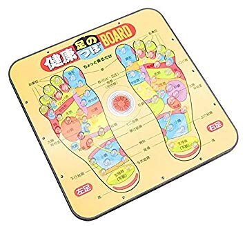 毎日数分使用することによって「ツボ」に心地よい刺激を与え血行を促進。 健康な身体つくりをサポート。手軽に出来る健康法です。 「健康足つぼボード」は、足の裏に心地よい刺激を与えるボードです。 足の裏には全身のツボが集中しています。 本品を平らなところに置いて、ボードの突起部分に足の裏が垂直に当たるように乗ってください。 突起部分が足の裏を刺激します。 毎日数分乗るだけで、足の裏ツボ健康法が手軽に行えます。 ※ご使用にあたって※ 本品を床材に直接密着使用する場合、滑り止めゴムの内容物により、床材を変色・変質させる場合がありますので長時間置いたままでの使用は避けて下さい。