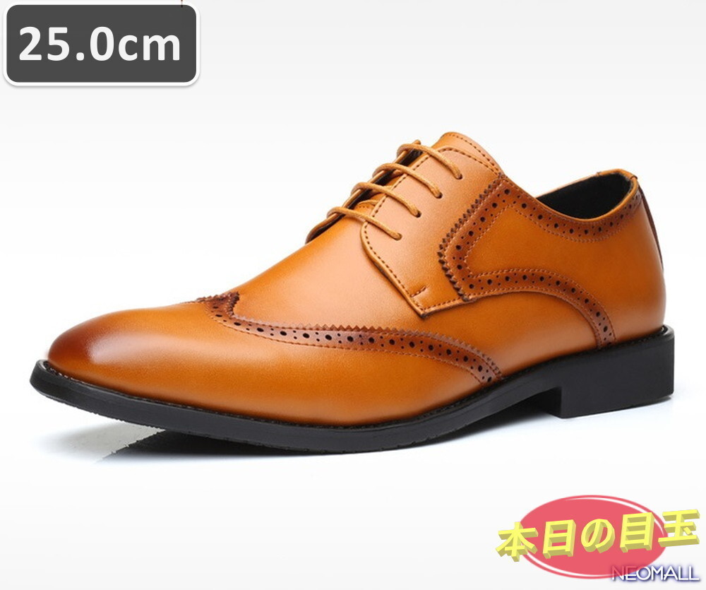 - 本日の目玉 ☆ メンズ ビジネス レザー シューズ ブラウン サイズ 25.0cm 革靴 靴 カジュアル 屈曲性 通勤 軽量 【429】