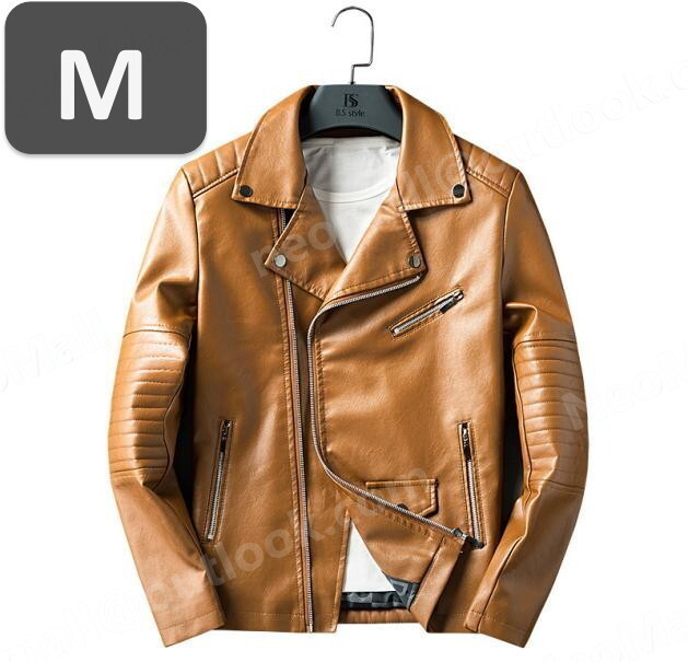 > メンズ レザージャケット【987】ブラウン Mサイズ 裏起毛 革ジャン バイクジャケット ジャケット PUレザー ブルゾン ライダーズ
